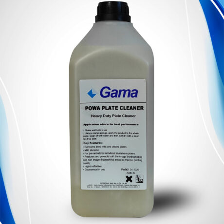 Plate cleaner, with mild abrasive, used for stubborn oxidation or reviving a stored plate which is proving difficult to start. Removes even dried on ink, scum and oxidation easily, without damage to all types of pre-sensitized plates.